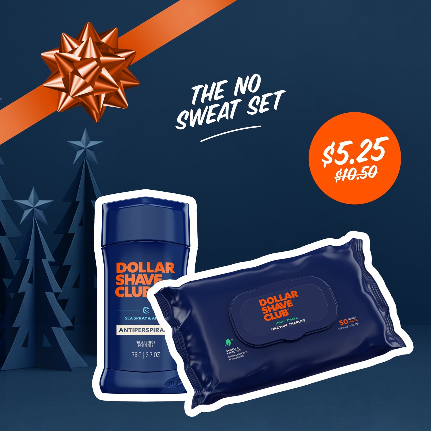 Get 50% off the No Sweat Set—Sea Spray & Amber Deodorant & One Wipe Charlies