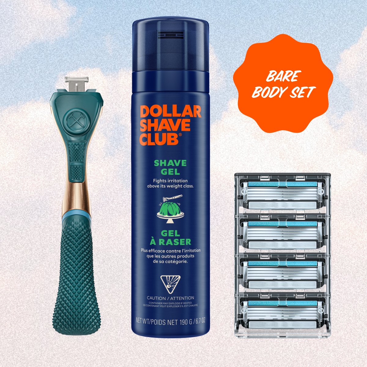 Stay smooth enough to make a dolphin jealous. This bundle brings the green-and-copper body shaver, 4-blade refills, and our lather-loving Shave Gel—delivered monthly, so you’re always ready to dive in, strip down, or show off.