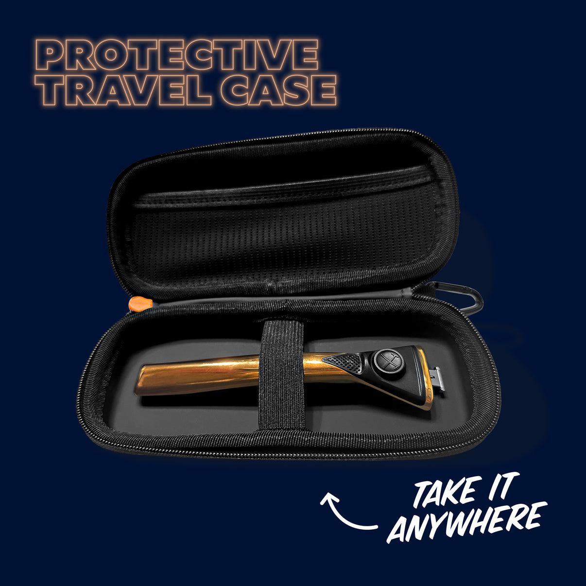 The Goldmember isn’t just another razor handle. Its heavy metal construction adds weight for better control, while the bold finish brings swagger to your shave. Packaged with a sleek travel case, it’s equal parts flex and function — durable enough for everyday use, stylish enough to gift. Lock in on this limited drop.