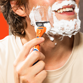 Grab your team’s Club Series Diamond Grip Handle and let the 6 Blade Razor do the work. Use short, gentle strokes in the direction of hair growth. Need to clean up under the nose or around sideburns? Flip it over and use the built-in precision trimmer for the finishing touches.