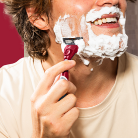 Splash warm water on your face to open up your pores. Squeeze out a dollop of our Shave Butter and apply evenly to your skin. No foamy clouds here — just a clear, hydrating formula that lets you see where you're shaving.