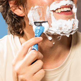 Grab your team’s Club Series Diamond Grip Handle and let the 6 Blade Razor do the work. Use short, gentle strokes in the direction of hair growth. Need to clean up under the nose or around sideburns? Flip it over and use the built-in precision trimmer for the finishing touches.