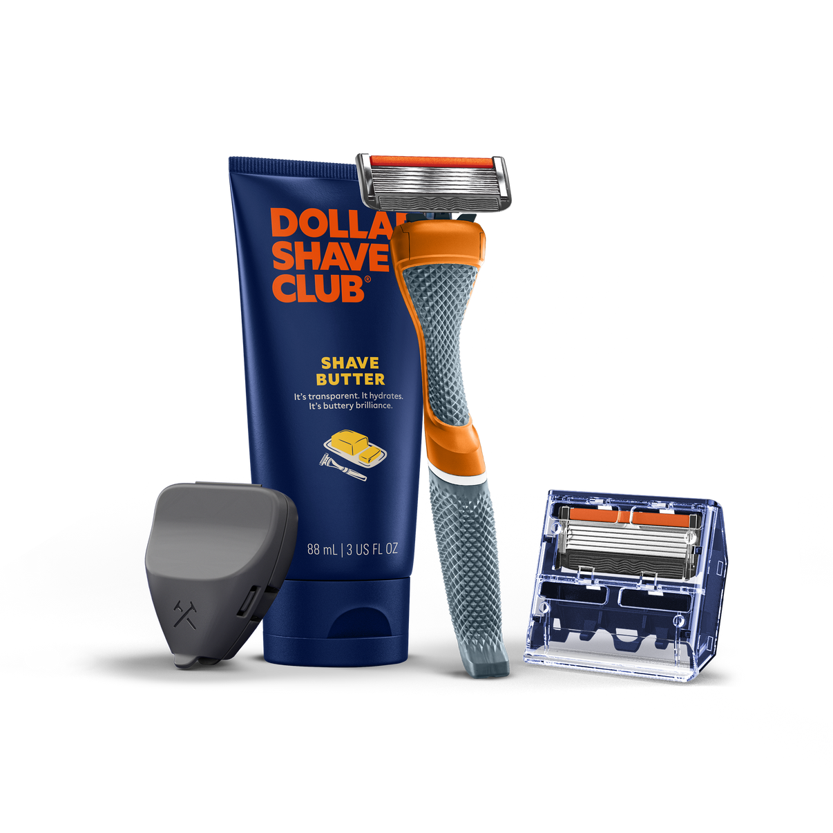 6 Blade Razors (x4) refills and Shave Butter (3oz) delivered monthly. First refill ships 2 weeks after first purchase.