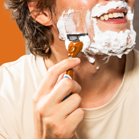 Splash warm water on your face to open up your pores. Squeeze out a dollop of our Shave Butter and apply evenly to your skin. No foamy clouds here — just a clear, hydrating formula that lets you see where you're shaving.