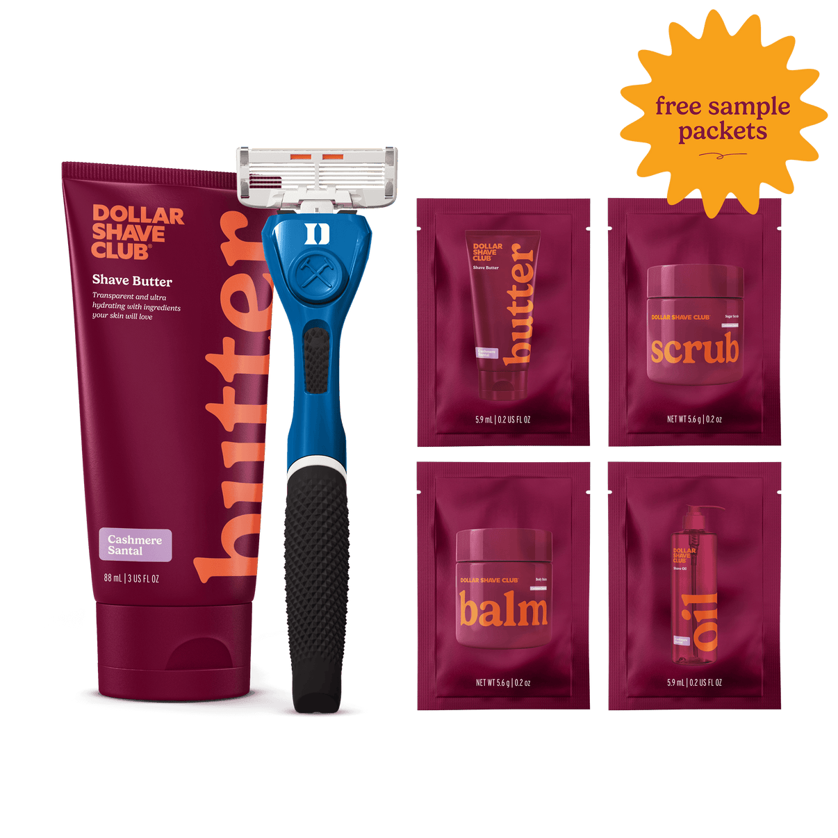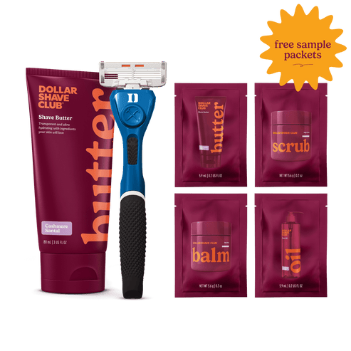 6 Blade Razors (x4), Shave Butter (6oz) refills delivered every month.