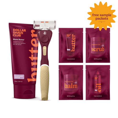 6 Blade Razors (x4), Shave Butter (6oz) refills delivered every month.