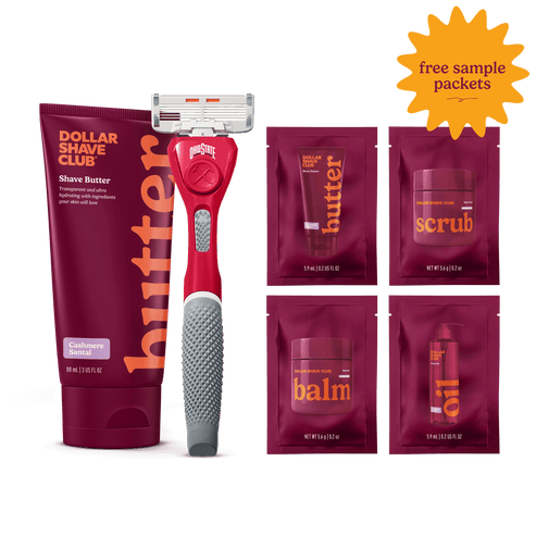 6 Blade Razors (x4), Shave Butter (6oz) refills delivered every month.