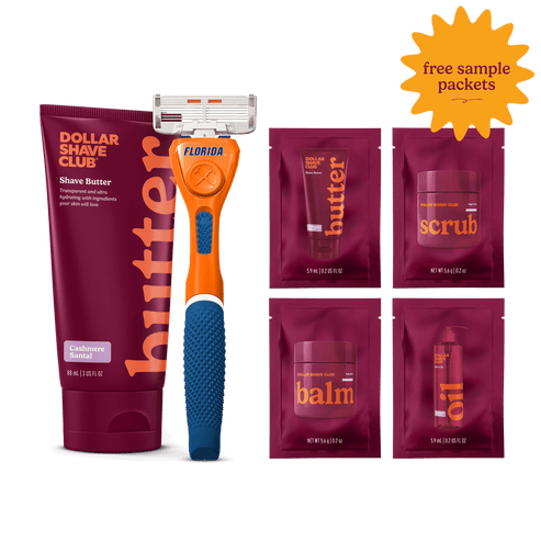 6 Blade Razors (x4), Shave Butter (6oz) refills delivered every month.